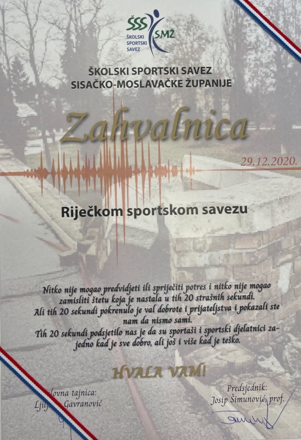 Svakako treba zahvaliti Gradu Rijeci i gradskim firmama, Hrvatskom olimpijskom odboru, kao i Savezu školskih sportskih društava Grada Rijeke i Rijeka sportu.