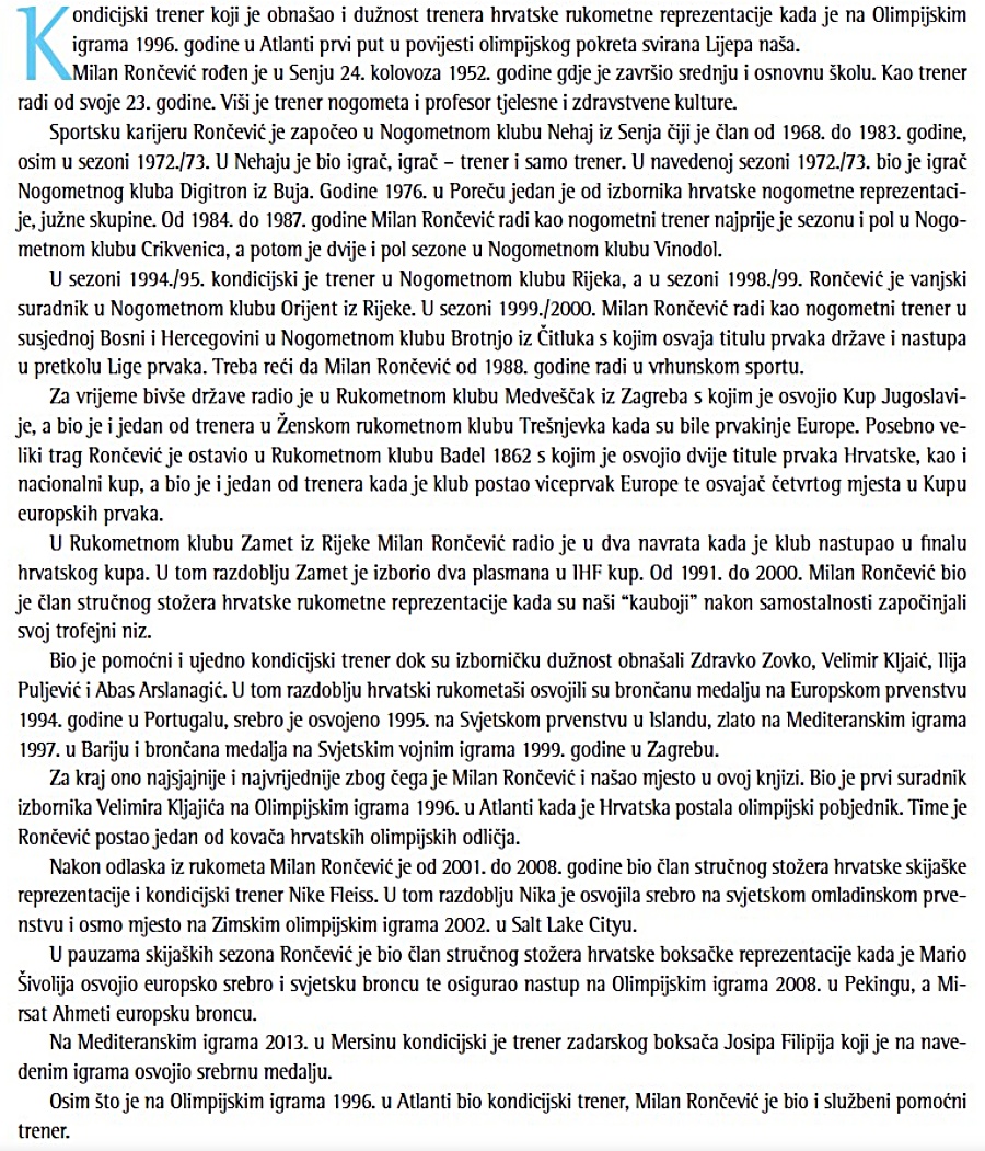 Evo što je 2014. godine o Rončeviću napisao Jurica Gizdić u knjizi "Kovači hrvatskih i olimpijskih odličja".
